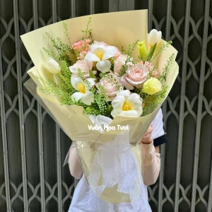 “Wow, shop ơi! Hoa đẹp ngoài sức tưởng tượng của em luôn ạ! Mỗi bông đều tươi, cách phối màu quá tinh tế. Em đặt tặng mà ai cũng khen hết lời. Cảm ơn shop nhiều lắm, lần sau em nhất định sẽ quay lại ủng hộ tiếp!”