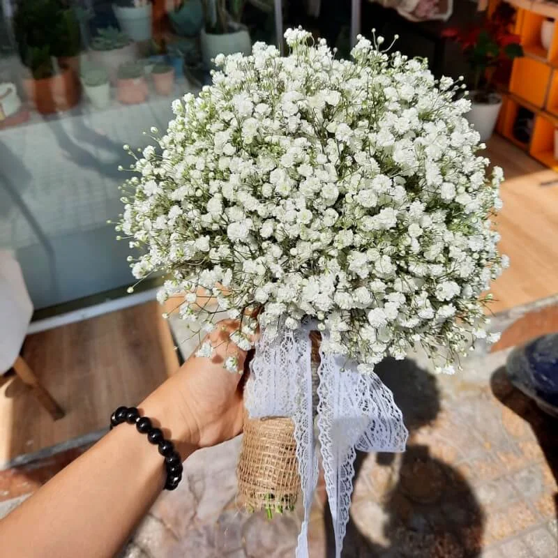 Bó hoa cầm tay cô dâu hoa baby trắng
