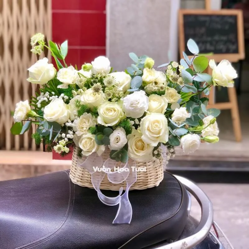 Bạn có thể theo dõi Vườn Hoa Tươi và cập nhật thêm các sản phẩm về Hoa Sinh Nhật, Hoa Khai Trương, Hoa Cưới, Hoa Chia Buồn và Hoa Sự kiện theo từng mùa tại trang Facebook | Printerest hay Website của chúng tôi. Đối với mỗi dòng sản phẩm của chúng tôi đều được sáng tạo theo nhiều phong cách như: giỏ hoa, bó hoa, lẵng hoa hay kệ hoa là tuỳ do nhu cầu cụ thể của bạn!