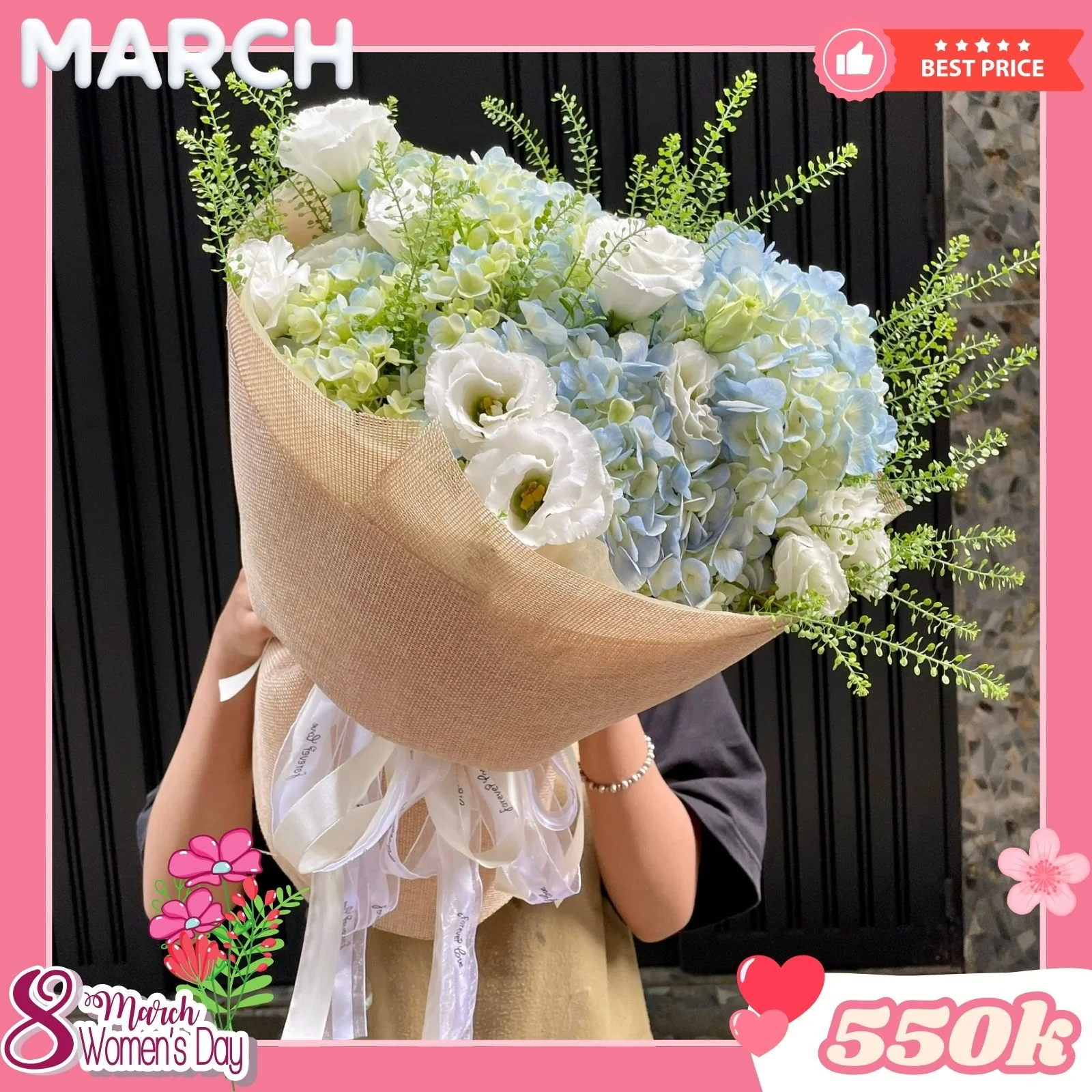 - (*) Hoa 8 tháng 3 năm 2025 Tiệm xin được tăng giá 20% so với ngày thường do hoa tăng cao tại nhà vườn. Rất mong nhận được ủng hộ và thông cảm của các bạn!