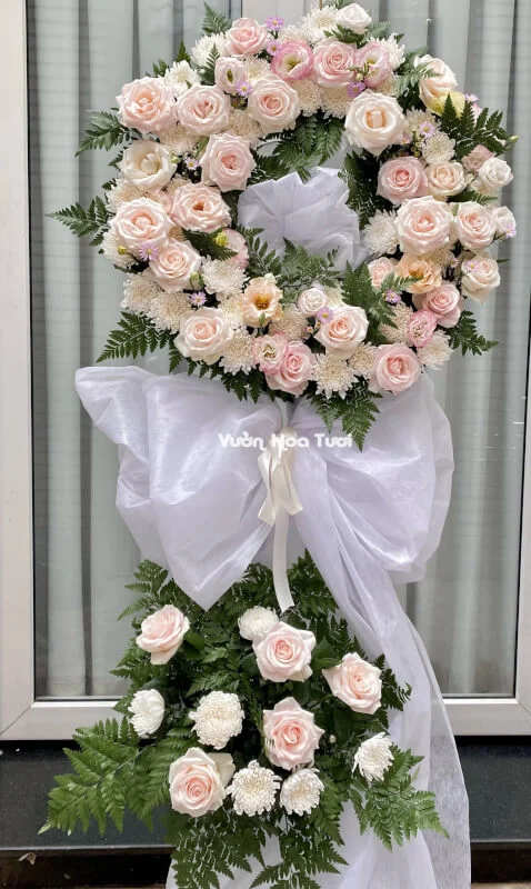 Hình ảnh về mẫu Vòng Hoa Chia Buồn Trắng Hồng CB04